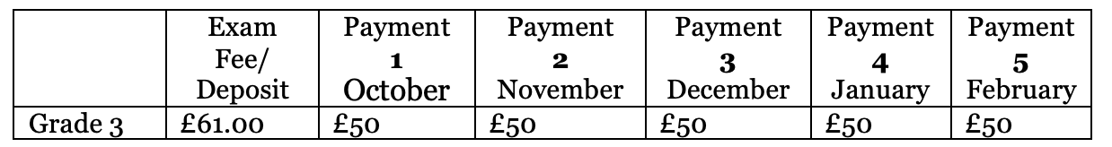 Tuition and venue costs are split across five months, with payment due on the 1st of each month. We do ask for the exam fee upfront, so that we can pay it to the exam board straight away and secure our exam booking.